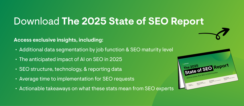 Access the latest data on SEO changes, enterprise SEO trends, and more in our 2025 State of SEO Report, based on exclusive data from our annual SEO survey, to inform your SEO strategy for the next 12 to 18 months.