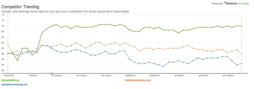 - Competitive landscape: Before Conductor, the Goodwill of Greater Washington didn’t have insight into their competitive landscape. Now, they have simple, deep-insight systems in place to monitor comparison domains and discover opportunities.