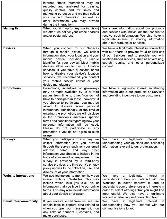 4. HOW WE COLLECT INFORMATION ABOUT YOU AND THE PRIMARY PURPOSE FOR COLLECTION AND USE OF THAT INFORMATION.