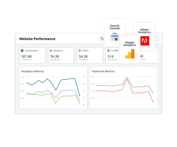 The only platform that connects every website data signal—from search & technical insights to engagement data & web analytics, we empower your team with holistic insights and powerful recommendations within one unified platform.