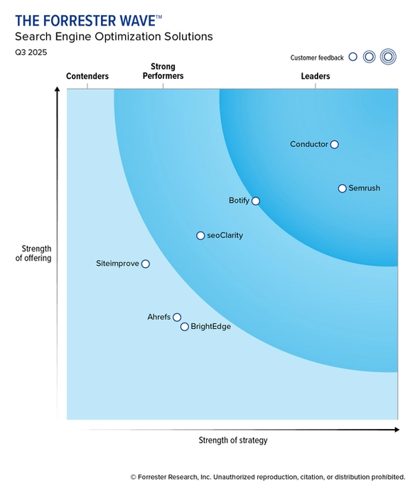 Conductor achieved the highest scores possible in 16 of 23 criteria in the 2025 Forrester Wave™—from AI-integrated SEO to workflow and process automation.
