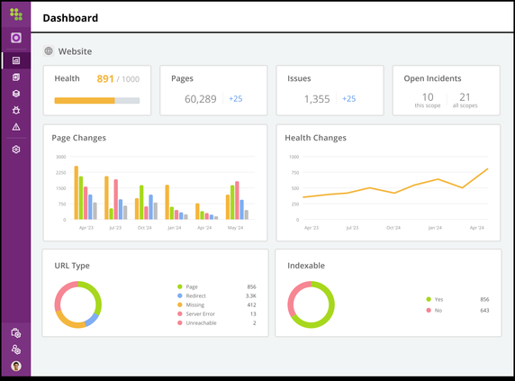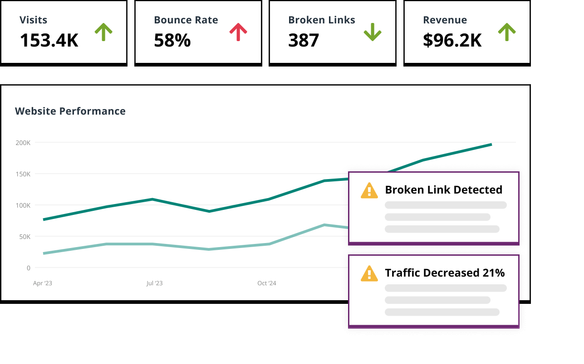 Maximize your growth potential with 24/7 website monitoring so you can take action on issues before traffic drops. Manage site governance and empower teams with real-time alerts that intelligently surface the issues and opportunities most impactful to your business.