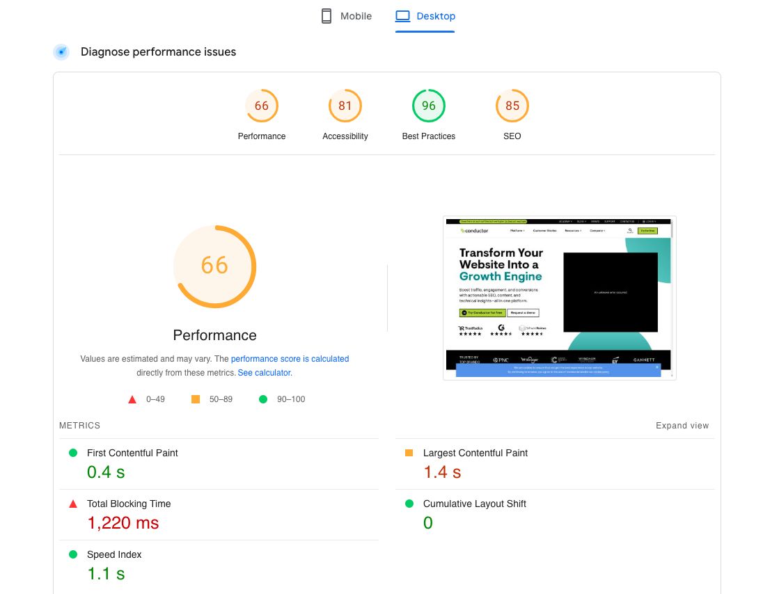 It’s common to see your desktop scores being better than your mobile scores. It just makes sense, considering that a desktop device often has better hardware and a faster, more reliable internet connection.