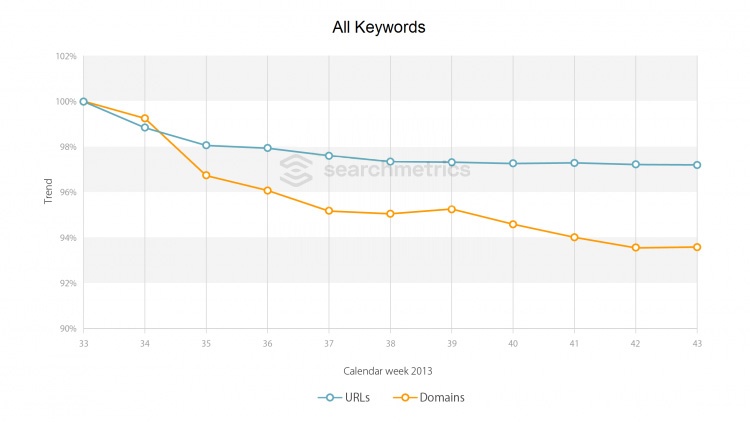 Based on these observations, Searchmetrics examined how the diversity of search results has developed since the Hummingbird first flew.