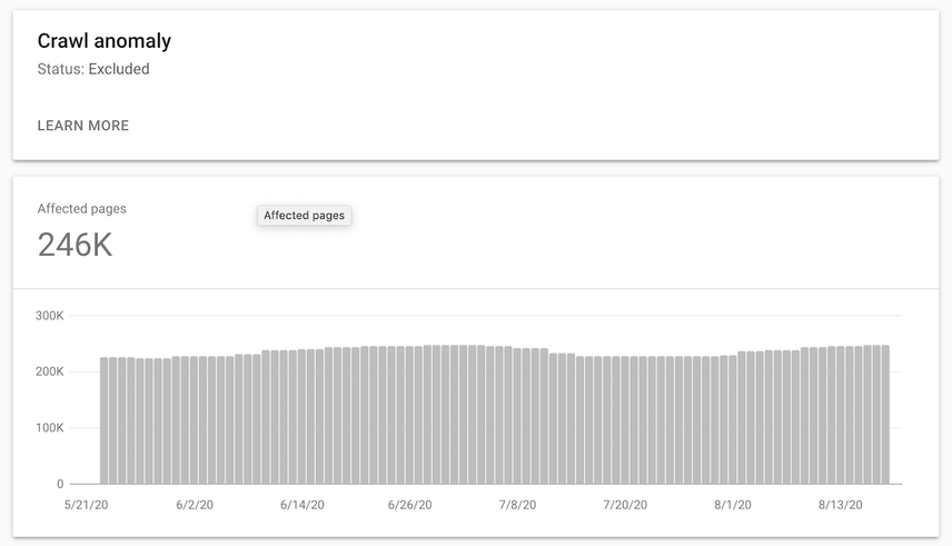 You can double-check this by going to Coverage > Crawl anomaly and inspect one of the URLs listed, then under Crawl it'll say "Failed: Crawl anomaly" for the field Page fetch.
