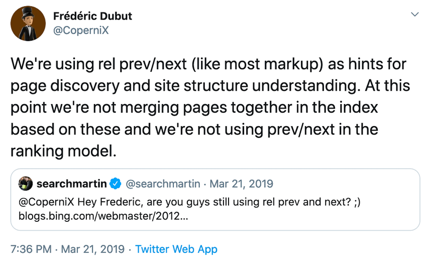 A downside of this is that these pages are look very similar, leading to a form of duplicate content. By making the relations between a series of pages clear to search engines using the pagination attributes, you give search engines context and prevent duplicate contentDuplicate Content