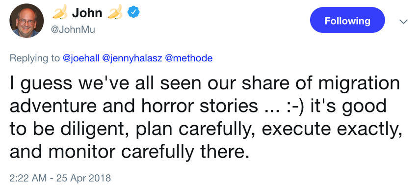 During the migration's planning phase, all the people that the migration would impact shared their concerns and goals. This made it clear what it would take to make the migration a success.