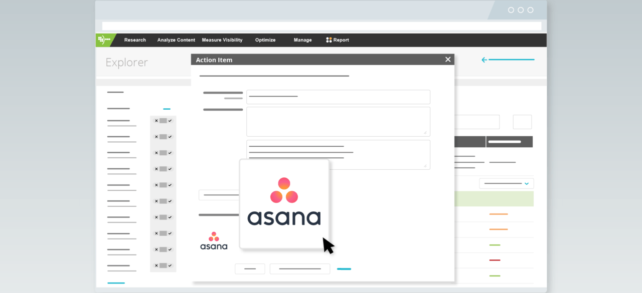 To alleviate this challenge for our customers, we built Actions. With Actions, you can send trackable tasks directly from Conductor Searchlight to your work management tool (like Asana or Jira). This makes it easy to share insights across your team, expedites your workflow, and ensures everything gets done with clear accountability.