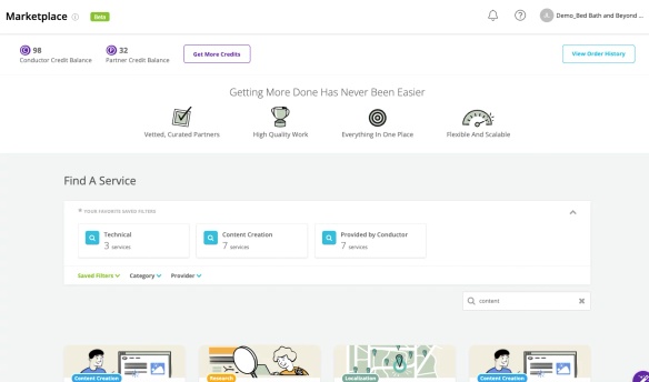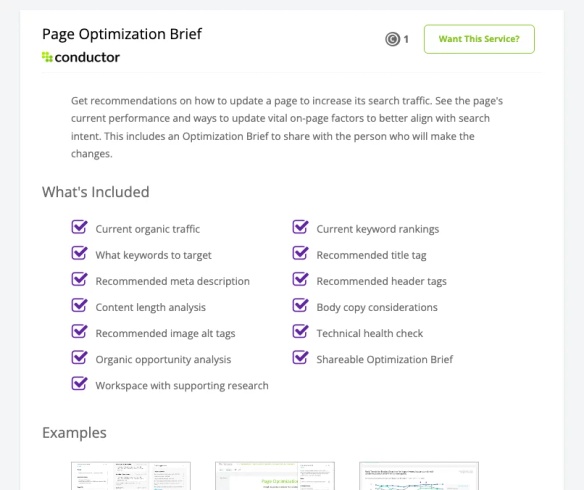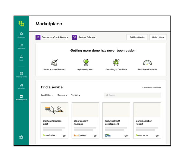 Want to get more work done? Choose from a curated menu of services from Conductor's team of experts at any time—directly within the platform.