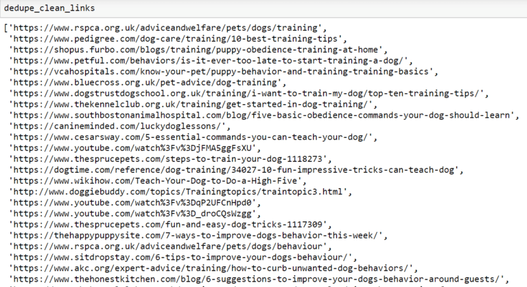 The output you’ll see should look something like this; a list of URLs that has been de-duplicated: