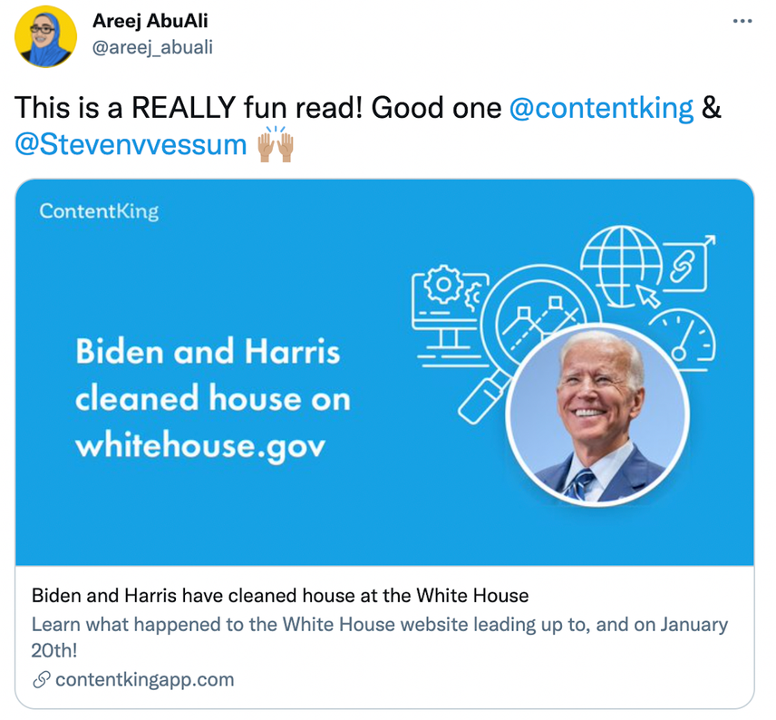 And of course we had ContentKing monitoring the White House website for science, which lucky for us wasn't a signficant investment, as our platform routinely monitors billions of URLs around the clock.
