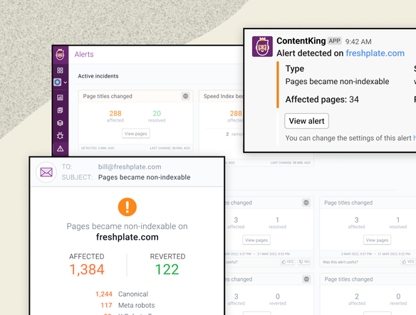 Through 24/7 continuous monitoring and auditing, ContentKing keeps an eye on your site at all times.