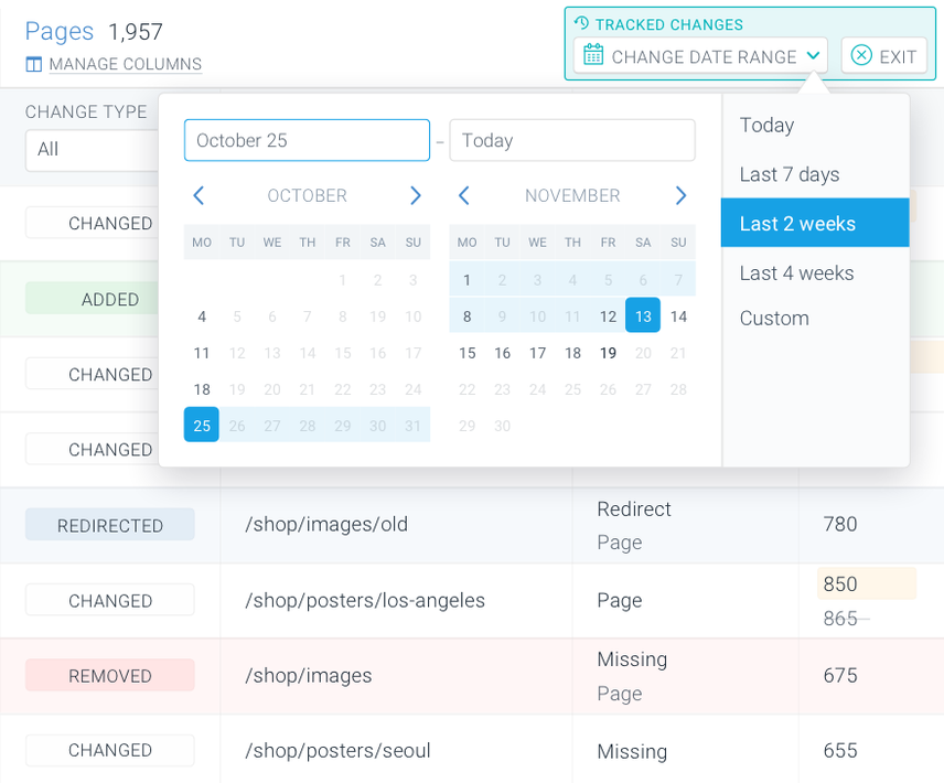 Wenn deine Rankings für dein Geschäft essentiell sind, ist es selbstverständlich, deine Website auf On-Page-SEO-Änderungen zu überwachen. Wir unterscheiden zwischen technischen und inhaltlichen Änderungen — technische Änderungen betreffen oft die gesamte Website, während inhaltliche Änderungen häufig nur die direkt betroffenen Seiten beeinflussen.