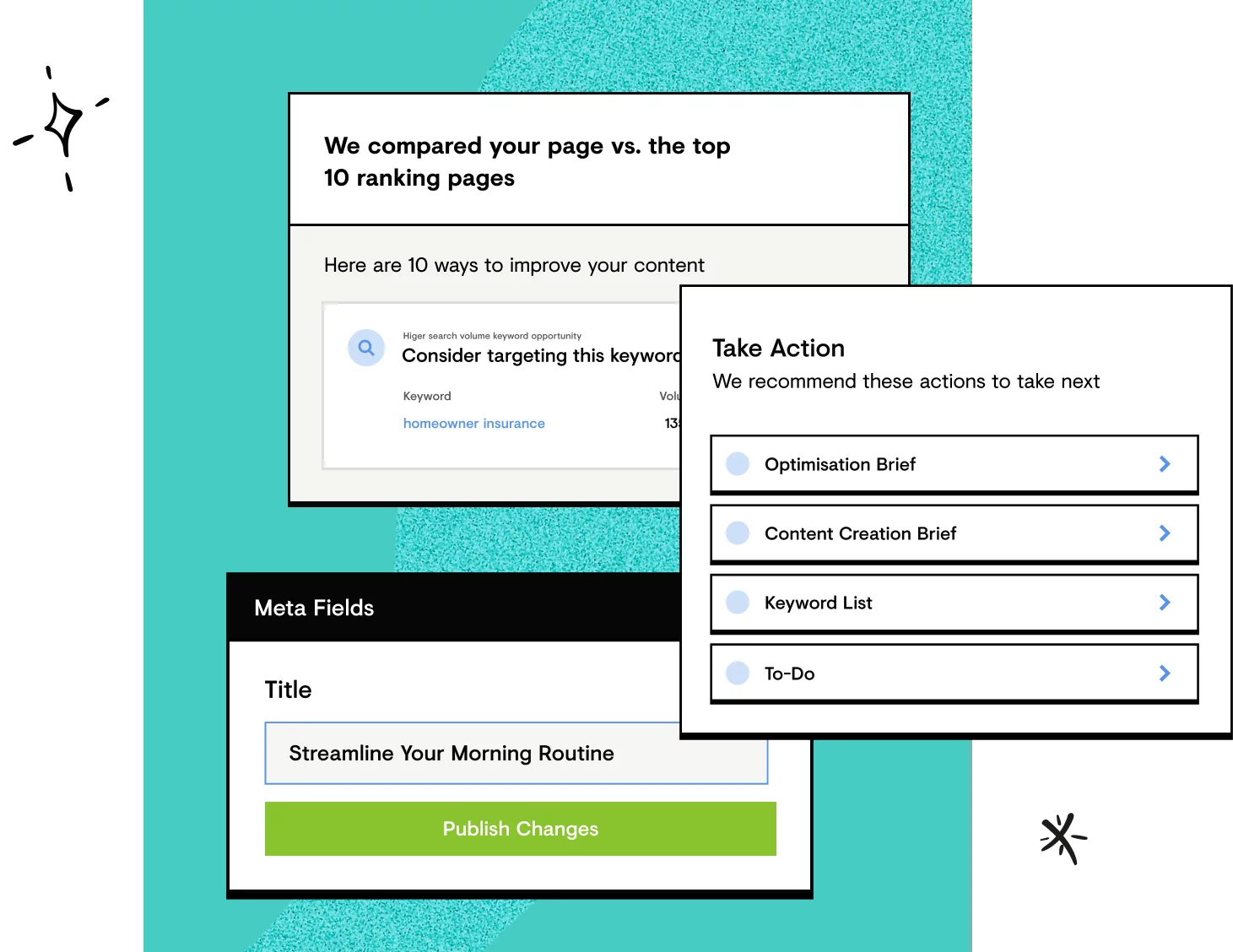 Nimm blitzschnell Änderungen an deinem Live-Content vor – mit sofortigen Optimierungen und fortschrittlichen SEO-On-Page-Tests. So wird dein Content gefunden und hebt sich von allen anderen ab.