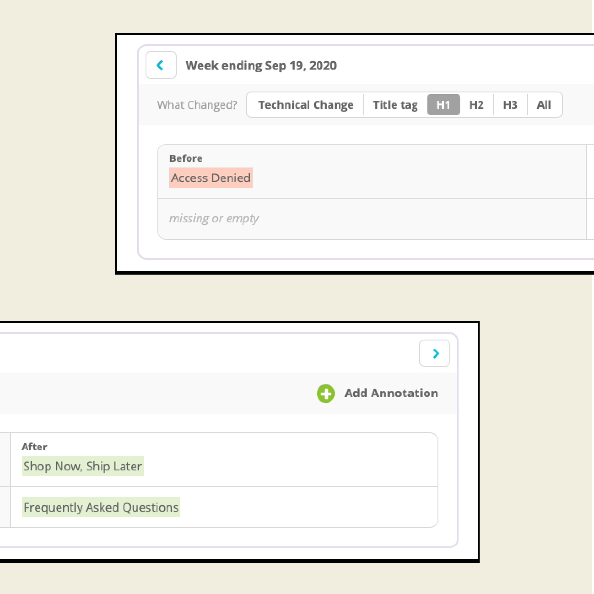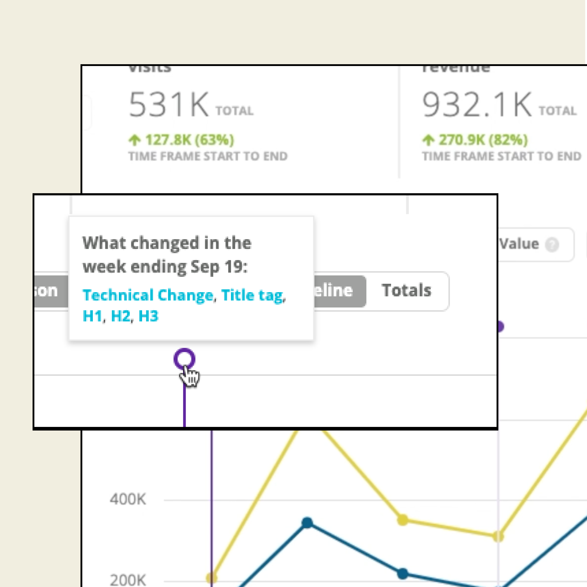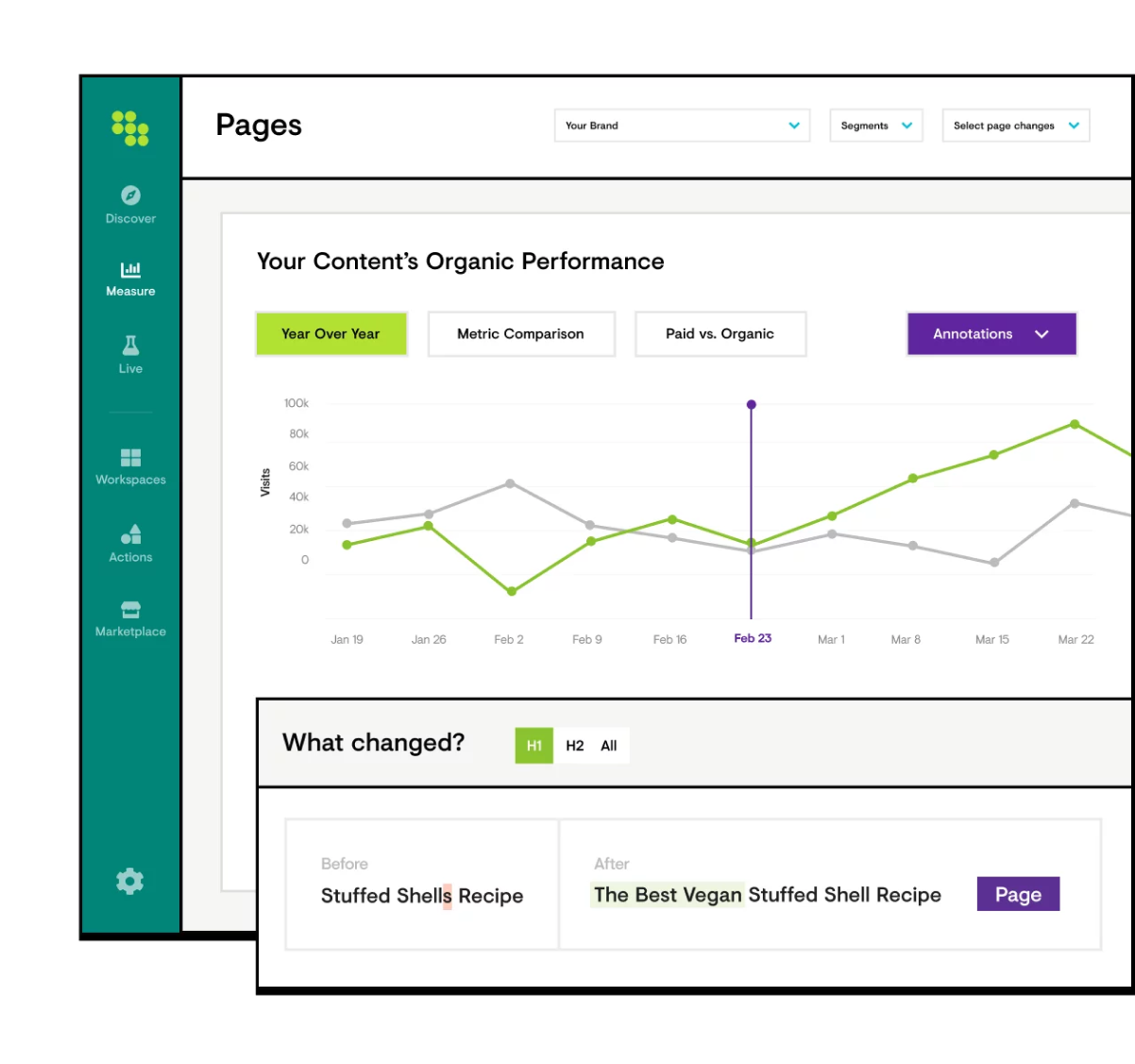 Stelle Zusammenhänge zwischen den Änderungen her, die du an deinem Content vornimmst, und den Impact, den diese Änderungen auf deine Leistung und deine SEO-KPIs haben.