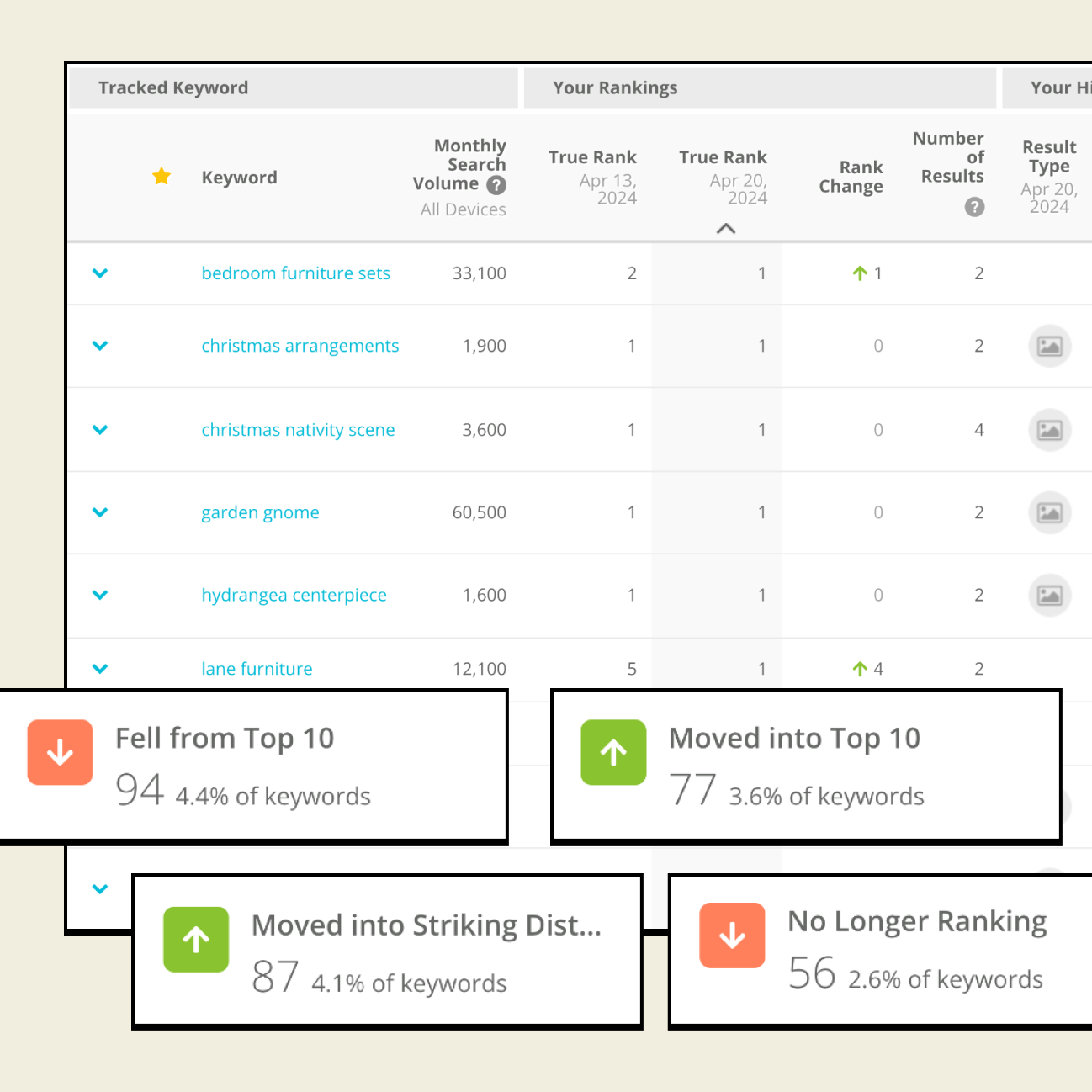 Mit dem täglichen Tracken des Keyword-Rankings weißt du immer, was mit deinen wichtigsten Keywords passiert.