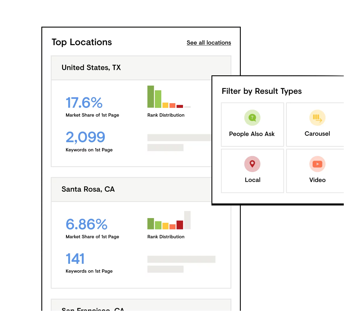 Finde mithilfe von intelligenten Filtern und Segmenten aus Standorten, Sprachen, Geräten und Ergebnistypen mit der führenden Ranking-Tracking-Technologie mühelos neue Möglichkeiten auf den sich ständig weiterentwickelnden SERPs.