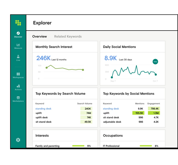 Leverage organic search, social media, and demographic insights to discover content topics that will resonate with your audiences across channels.