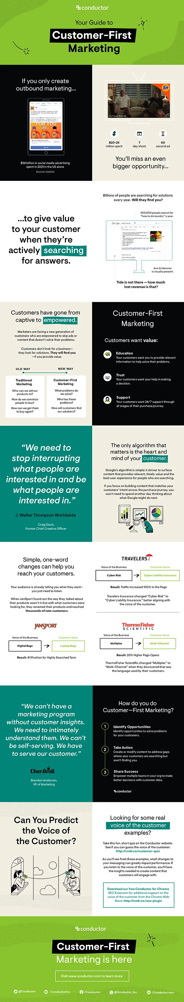 Customer-first marketing is a strategy by which businesses create products, content, and marketing campaigns so that their primary purpose is putting their customers first and their organization second. That customer focus represents a significant change from traditional marketing strategy, which focused on creating marketing initiatives based on company needs instead of customer needs.