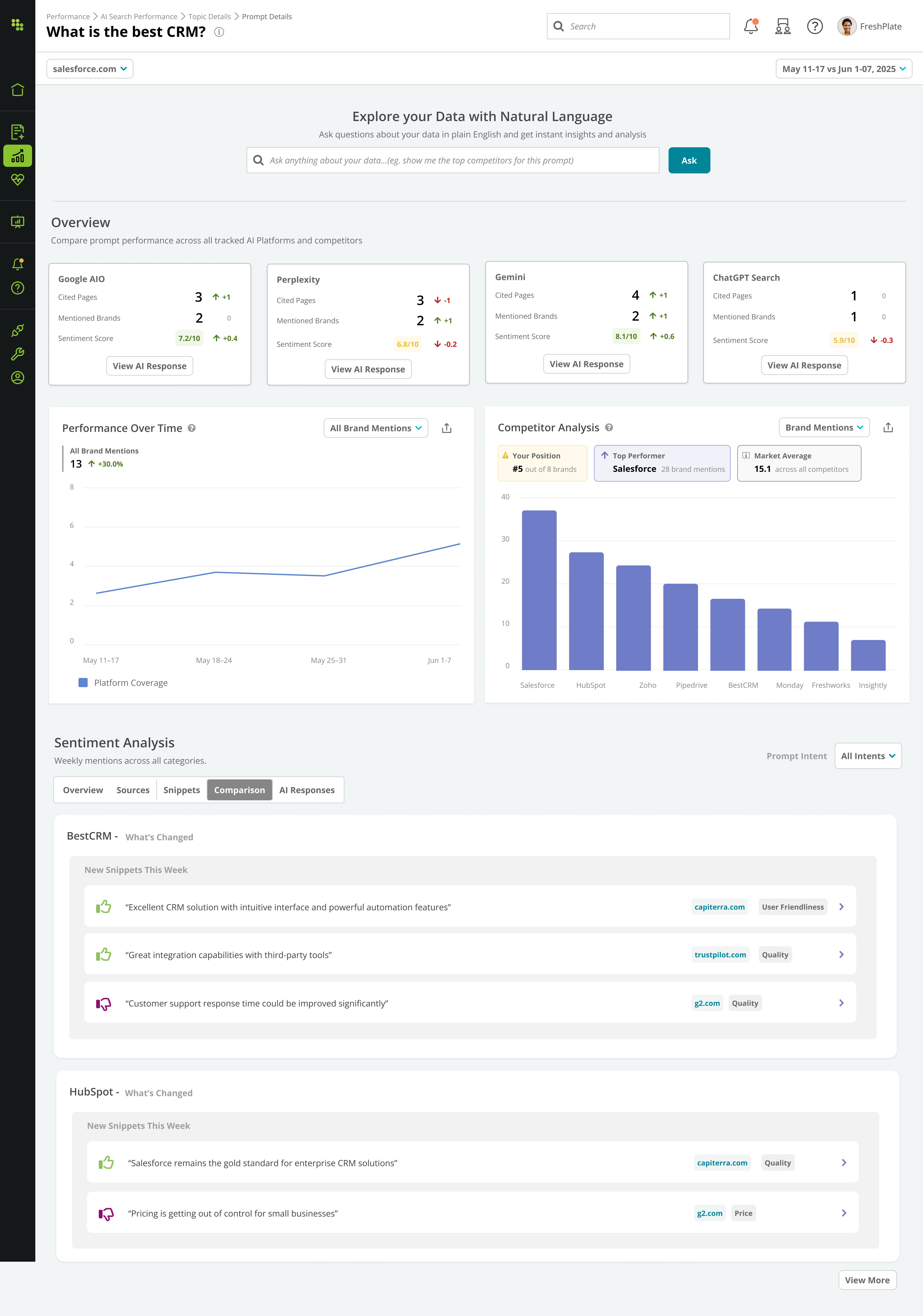 Only Conductor unifies your AI citations, mentions, and referral traffic with web analytics, search rankings, Search Console engagement data, and technical site health, providing you with the crucial context competitors lack and making our AI insights actionable for your business.