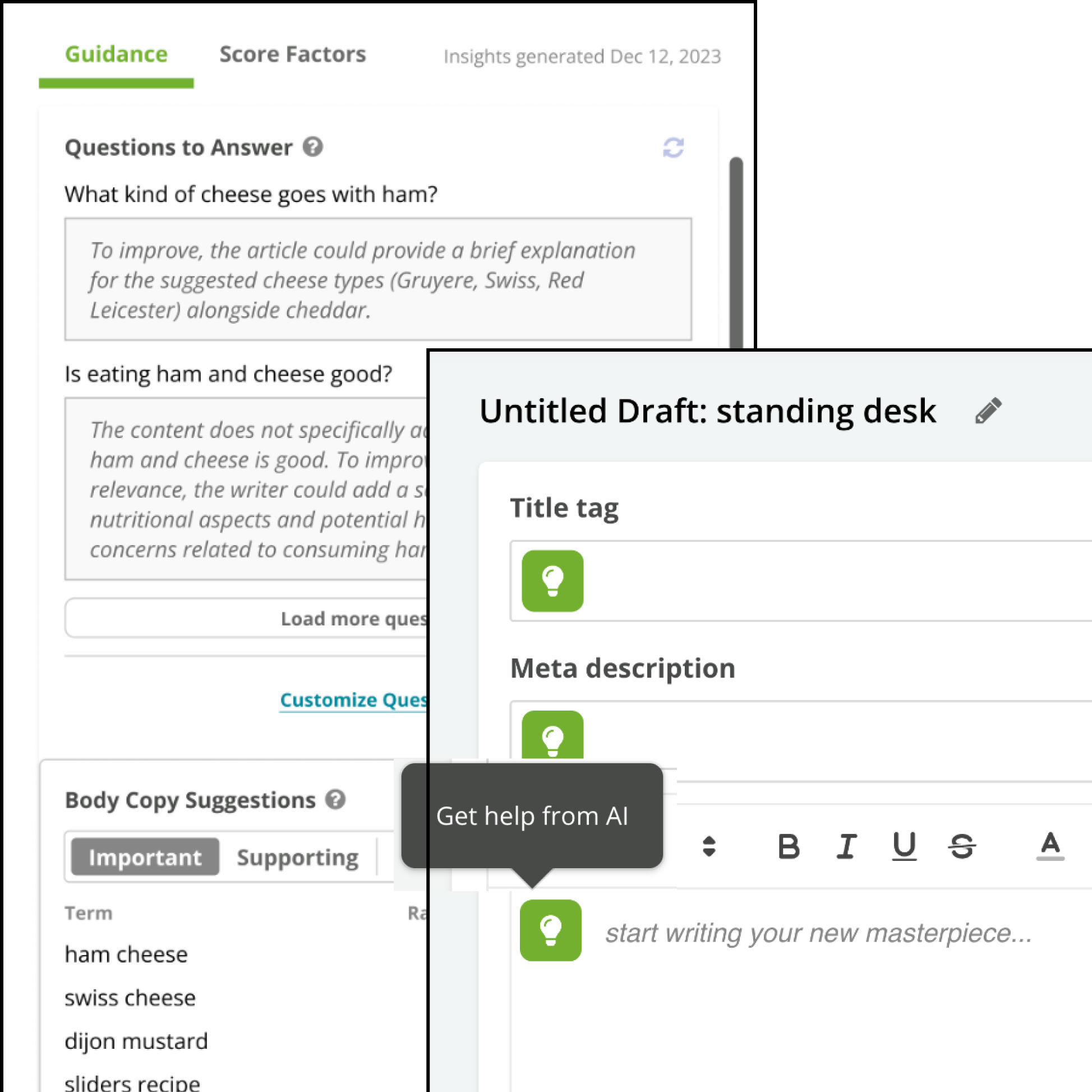 Evaluate every draft against the factors that matter most to search and AI visibility—before it goes live.