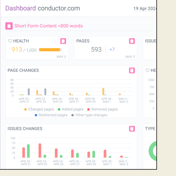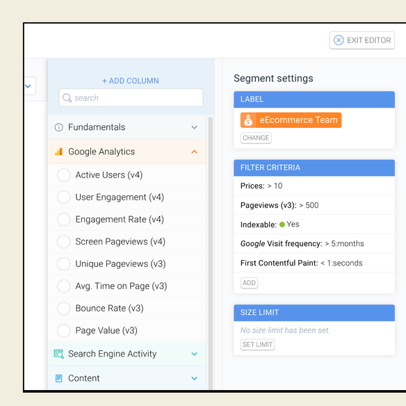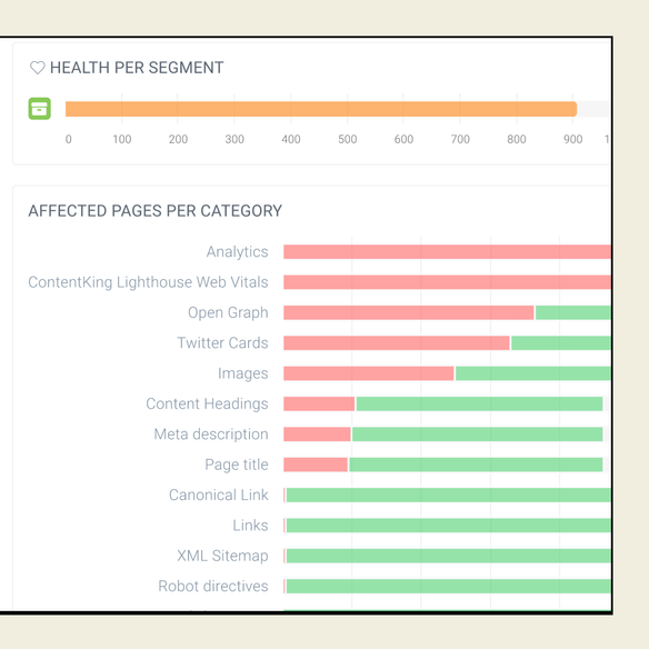 Segment your content using any combination of page factors, from load time to publish date, then get alerted in real-time as pages start or stop matching the underlying criteria.