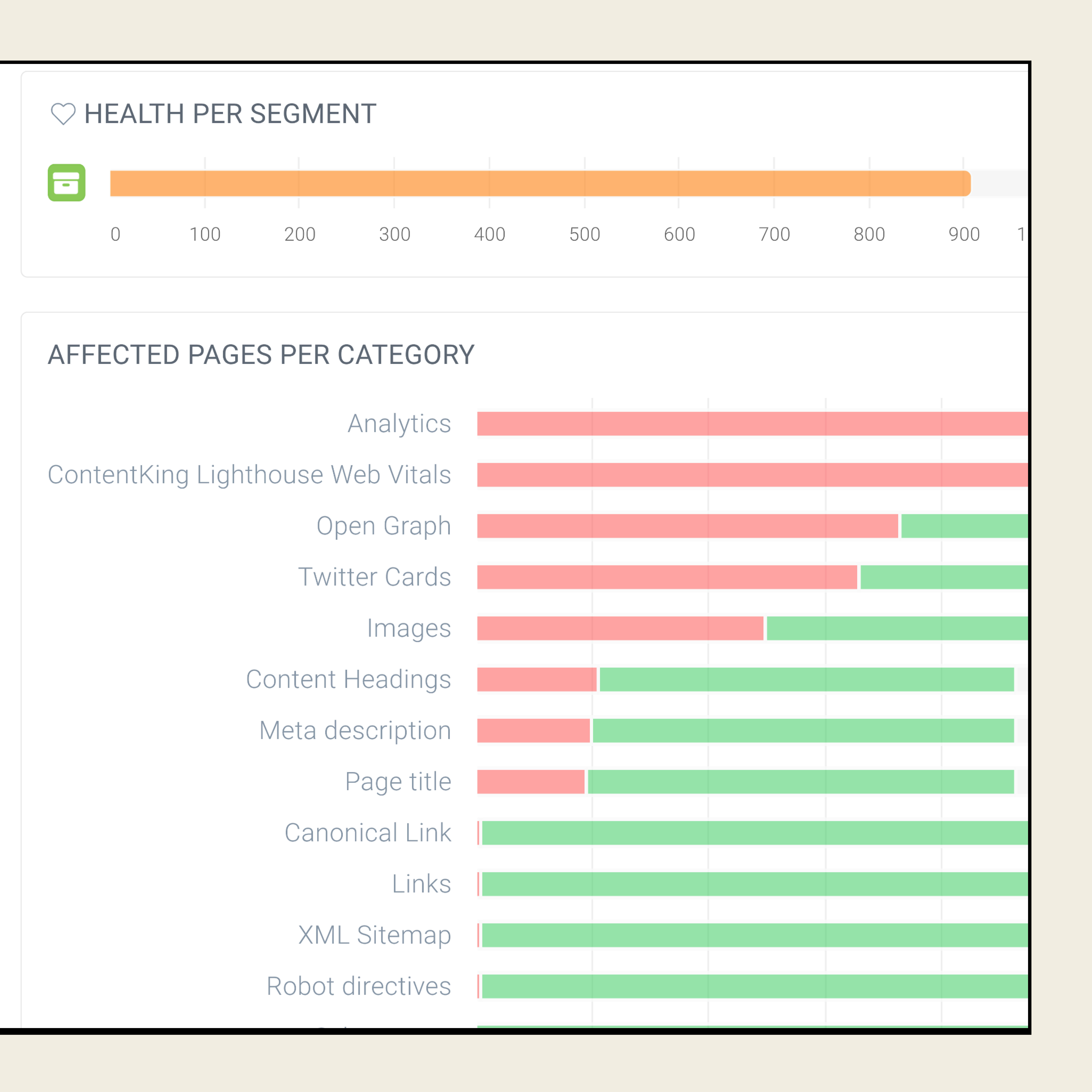 Segment your content using any combination of page factors, from load time to publish date, then get alerted in real-time as pages start or stop matching the underlying criteria.