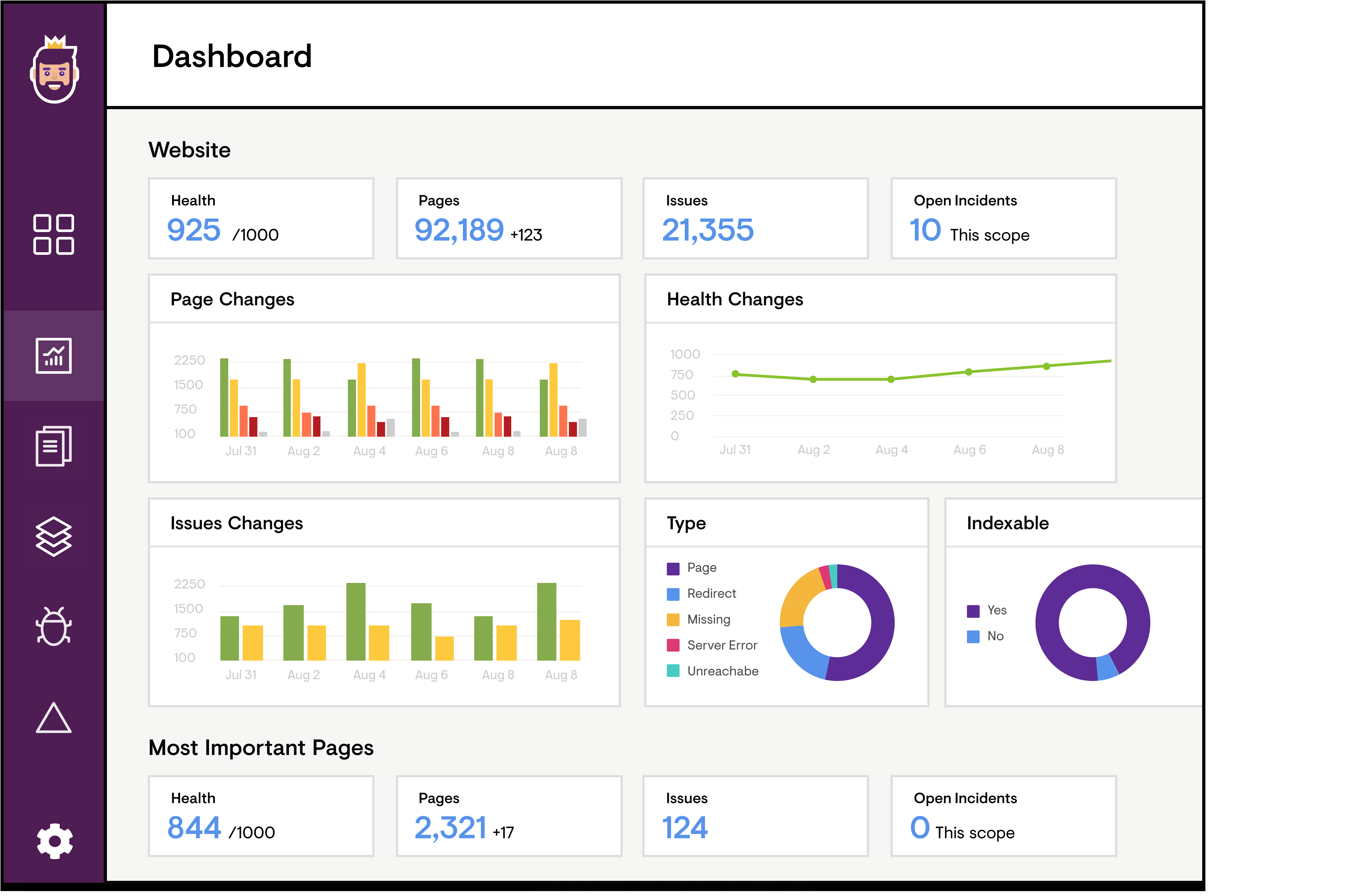 Catalog every page on your site and have full line-of-sight into when pages were last updated, how much content is being produced for each category, and content by author so all contributors know when and where to act.