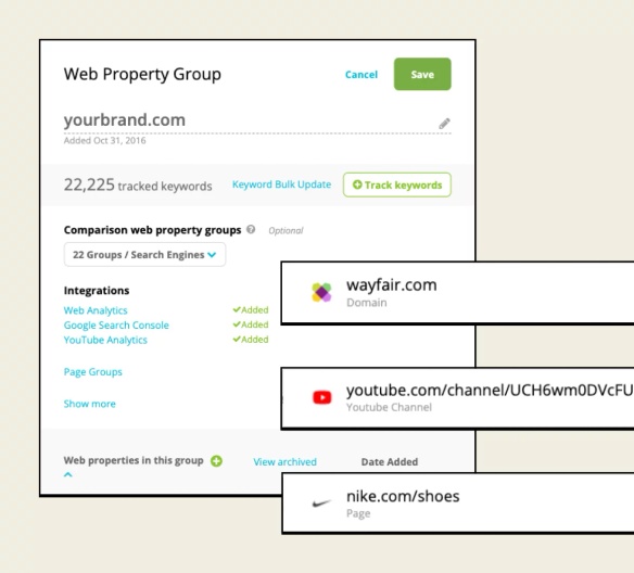 Define any digital asset or channel—owned, earned, and paid—as a web property and track its visibility and performance in-platform for a holistic understanding of ROI.