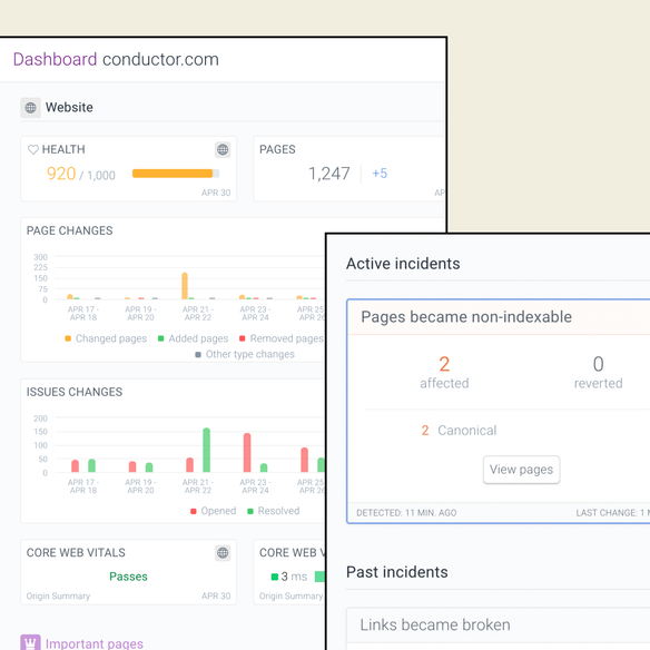 Equip each team invested in your website—whether marketing, eCommerce, or product—with smart detection systems built to prioritize the exact issues, optimizations, or content changes they care about.