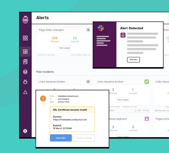 Optimize your site for peak technical performance and the best user experience with Conductor’s real-time technical monitoring solution through ContentKing.