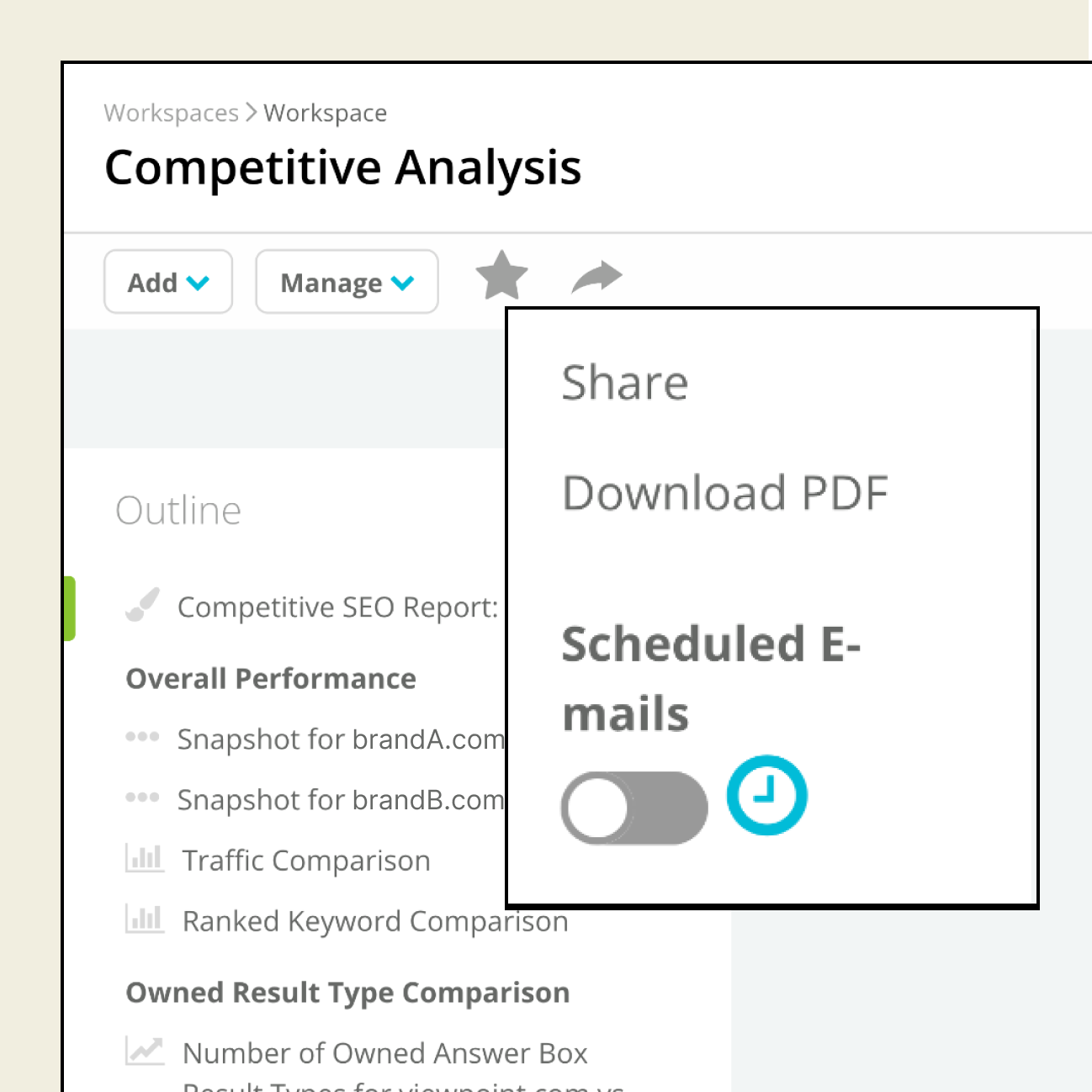 Send relevant reports to stakeholders. Build a workspace to share high-level wins with your executives or deliver topic ideas to your content team.