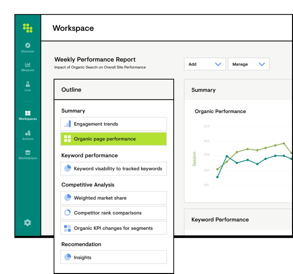 Share the value of your marketing efforts with Conductor's powerful reporting technology, Workspaces.
