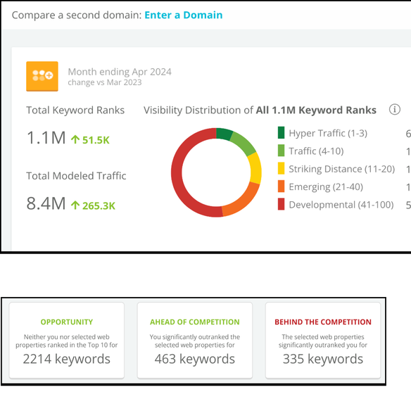 Analyze competitor market share, track their content strategies, and find actionable insights to outperform them in both AI and traditional search.