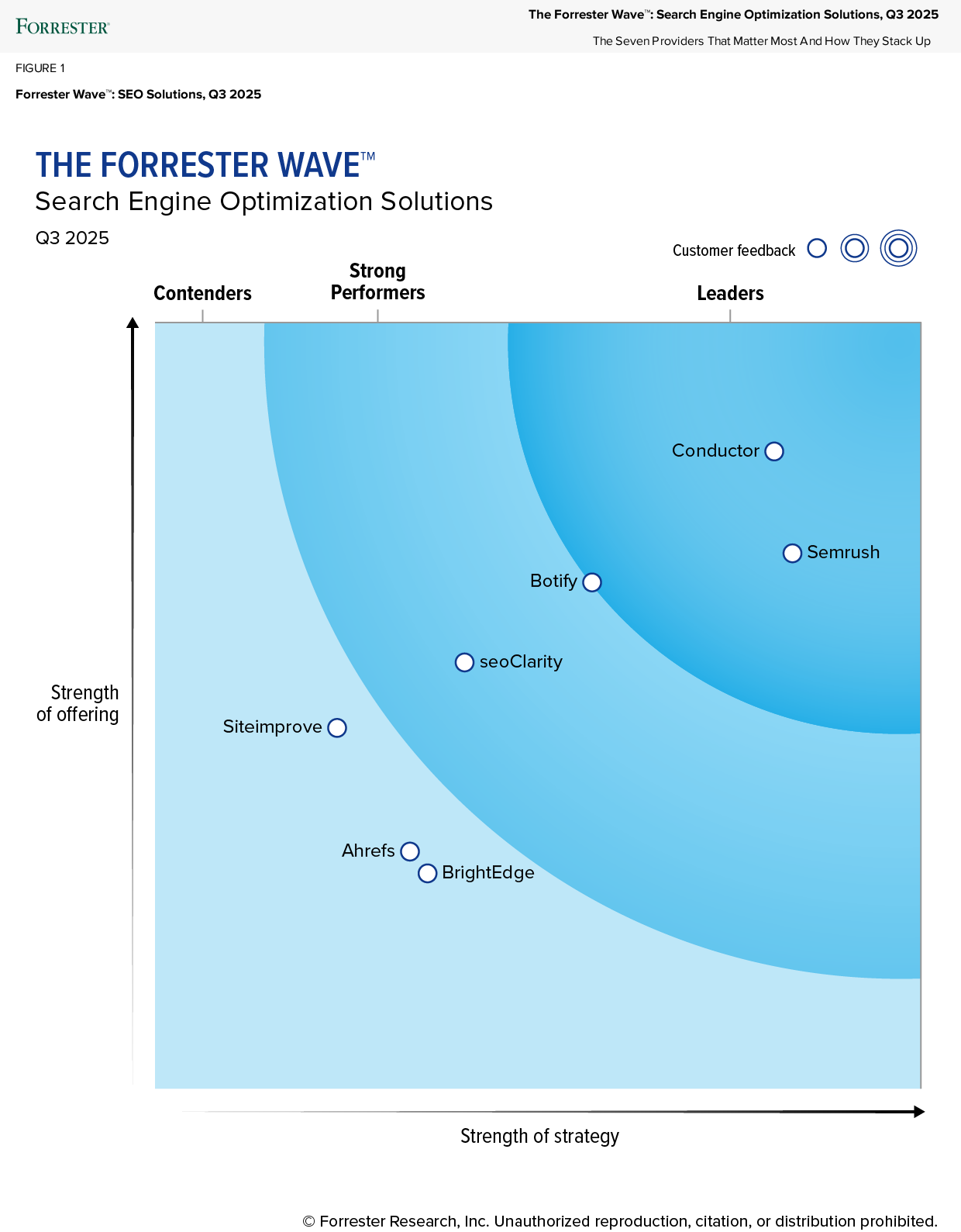 Conductor is a leader in The Forrester Wave™: Search Engine Optimization Solutions, Q3 2025 with the highest scores possible in 16 of 23 criteria, such as AI-powered SEO and content optimization.
