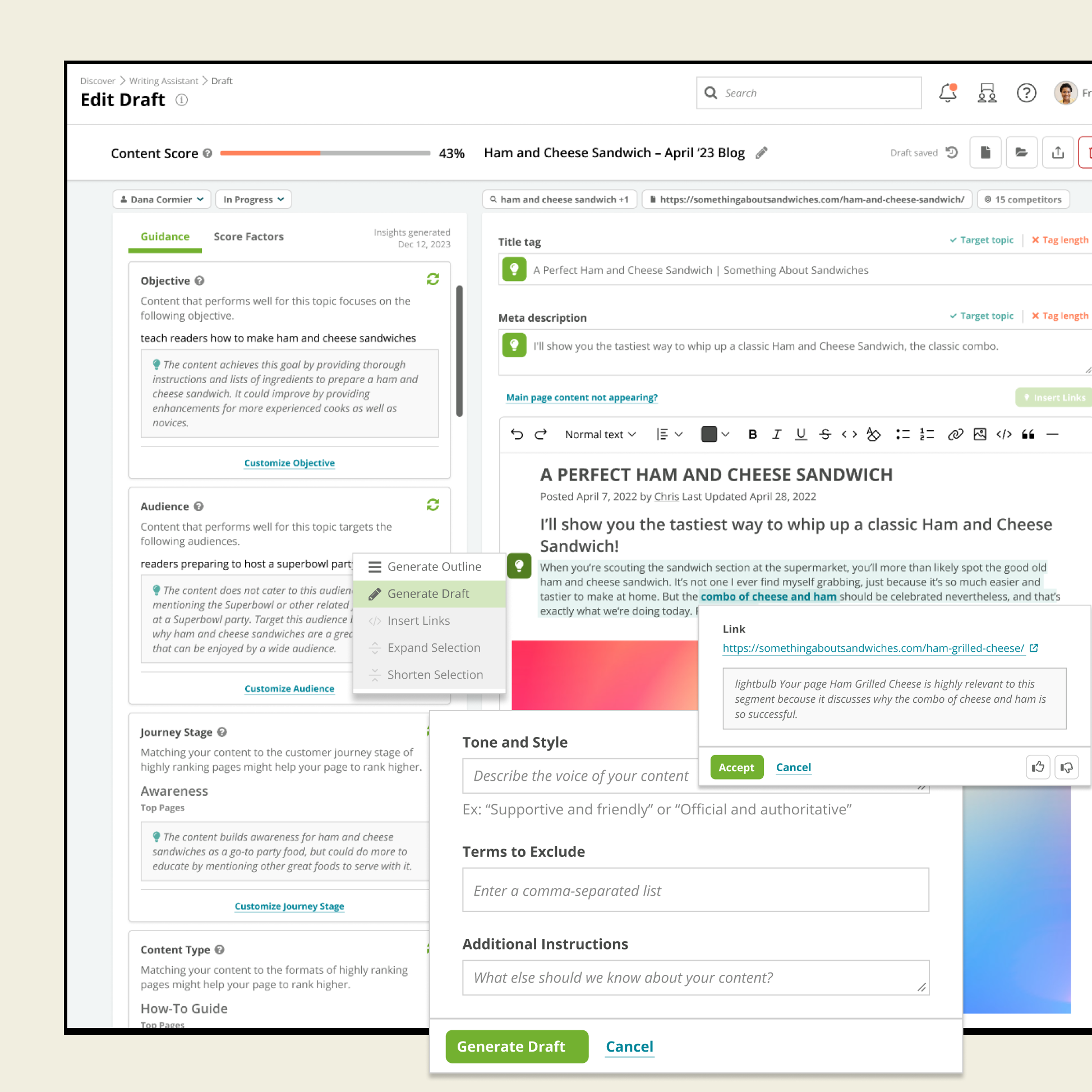 - Go from research to content creation to reporting on impact all in one place and leave the disconnected features to our competitors