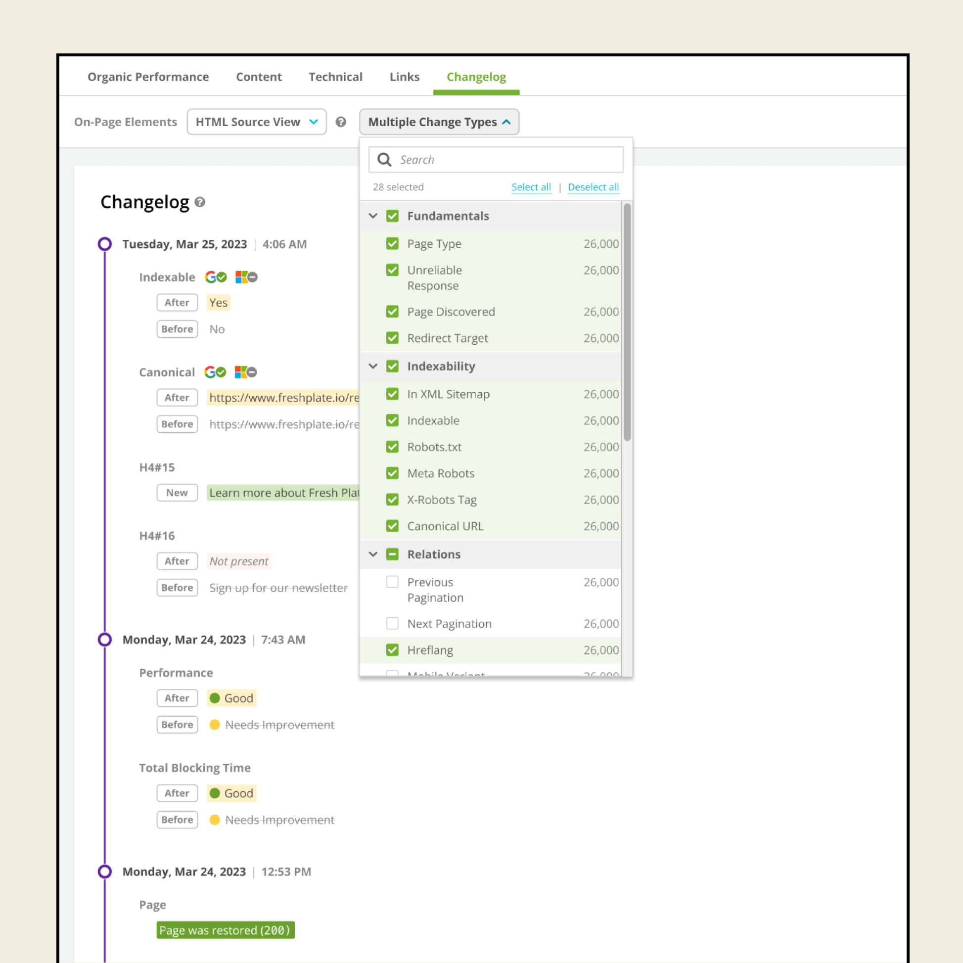 - Every page, every change, every time, thanks to our real-time changelog that ties action to ROI